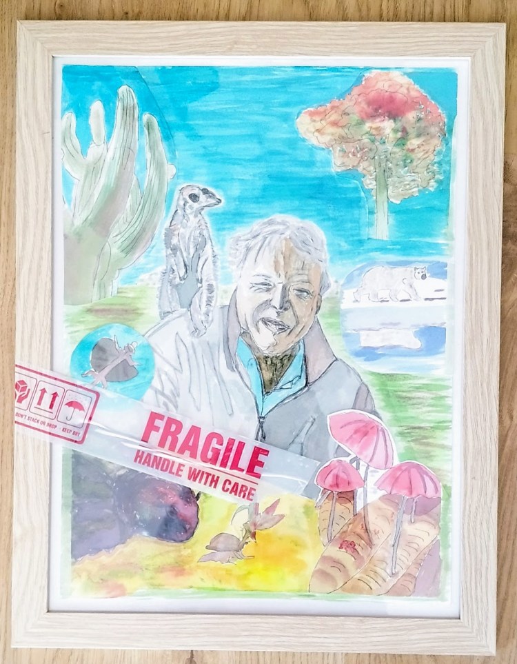Four of my portraits were selected for an exhibition at The Mill in Walthamstow, London, from 16th April – 25th May. These depicted Malala Yousafzai, Morgan Freeman, David Attenborough and The Queen and showed my use of oil, pastel, pen and watercolour and pencil respectively.