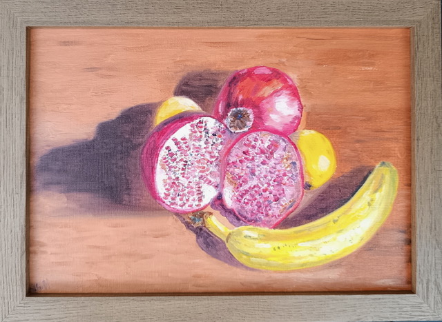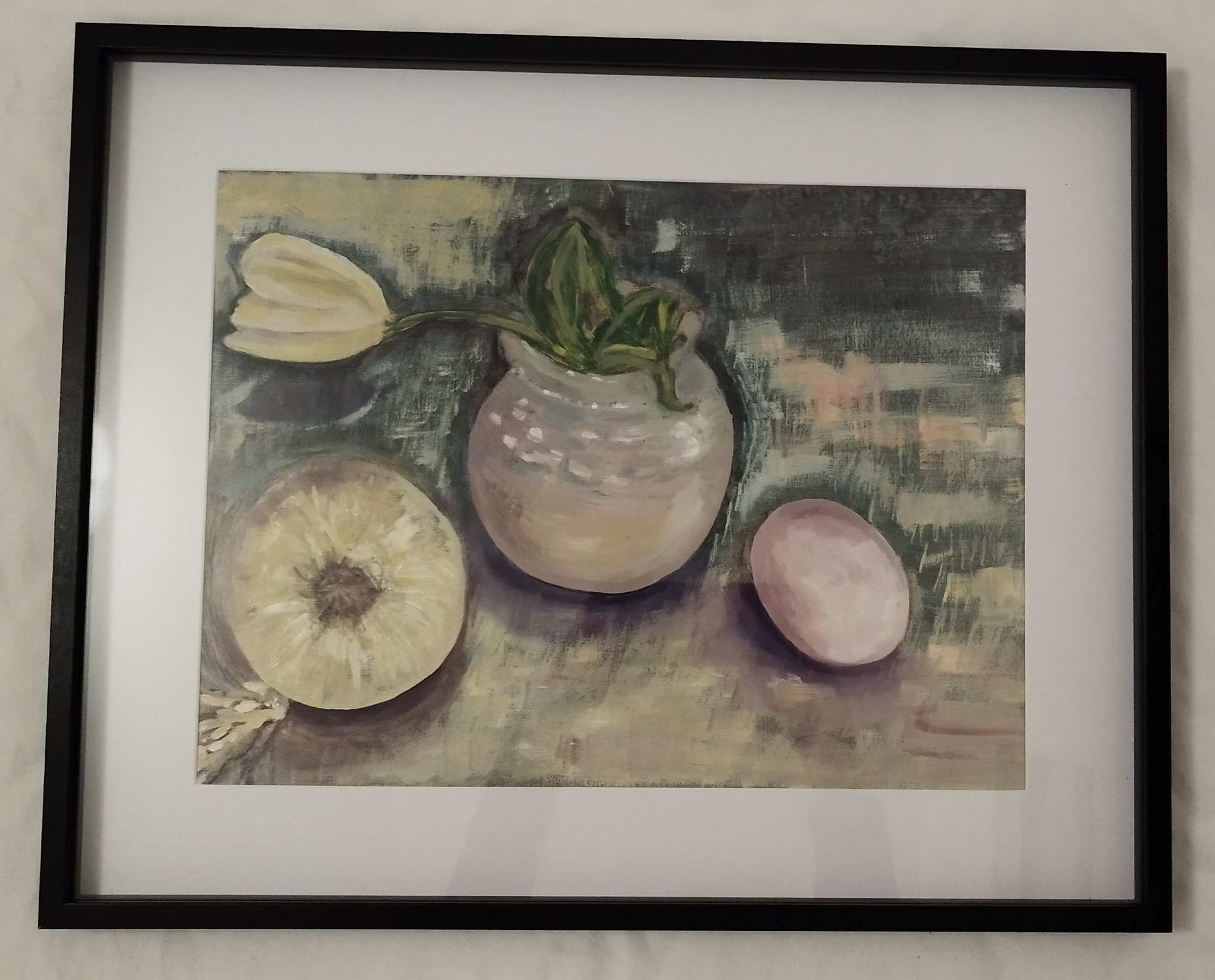 Ingredients for a cocktail, breakfast or both? oil on paper, £320, framed, plus shipping. 29 x 34cm.
