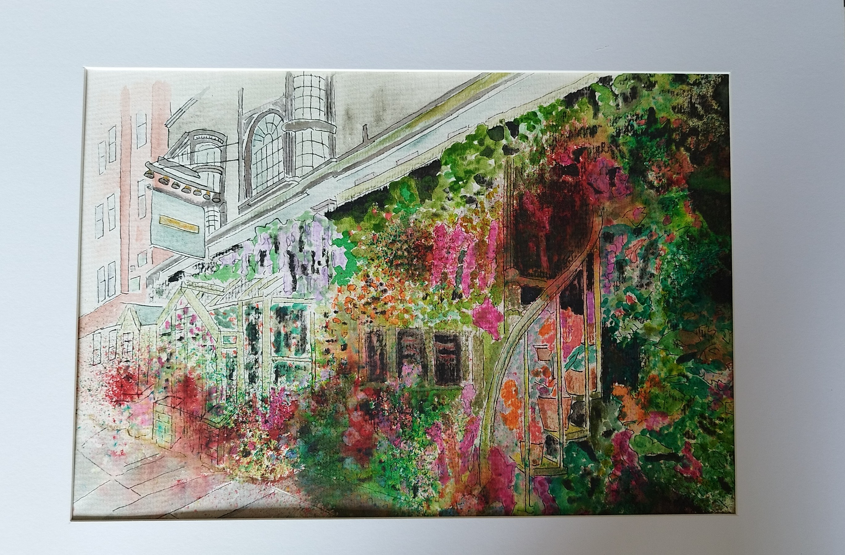 A pen and Brusho piece of The Ivy restaurant in full bloom, was sold for £250 at the Chelsea Arts Society annual competition. The exhibition took place from 12th-17th June, 2024.