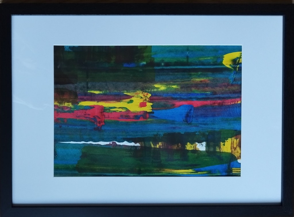Abstract reflections, acrylic on paper, framed, 63cm x 45cm £320. Some people prefer this vertical – up to you!