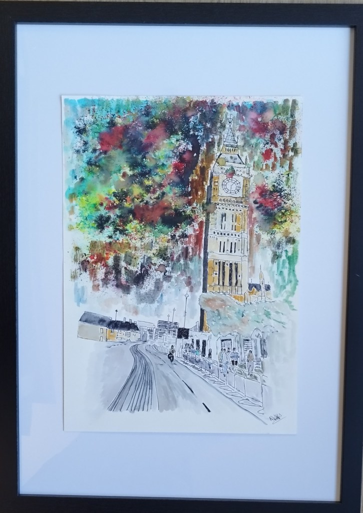 Highlights of Walthamstow, the top painting, was on display at the Mill, Walthamstow until November 1st 2025. Ink on paper, £25. Contact me if you are interested in buying it.