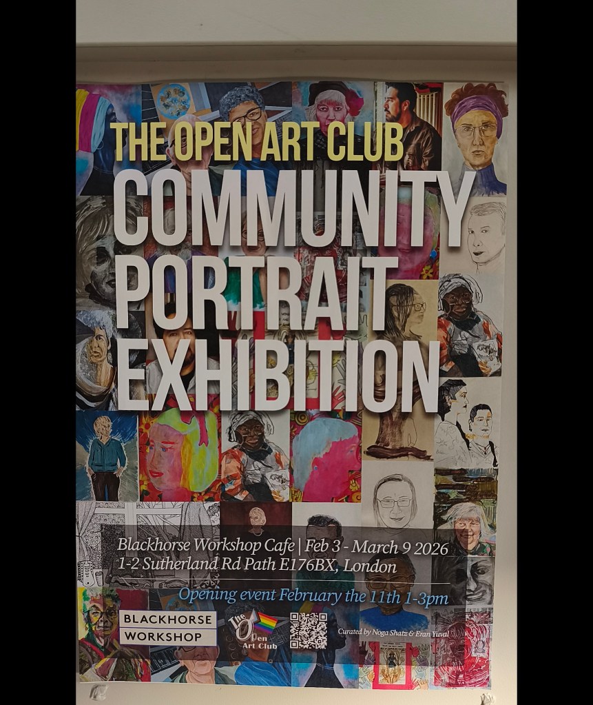 The Open Art Club Community Portrait Exhibition, Blackhorse Workshop Cafe, Feb 3rd to March 9th 2026. Open event February 11th 1-3pm.