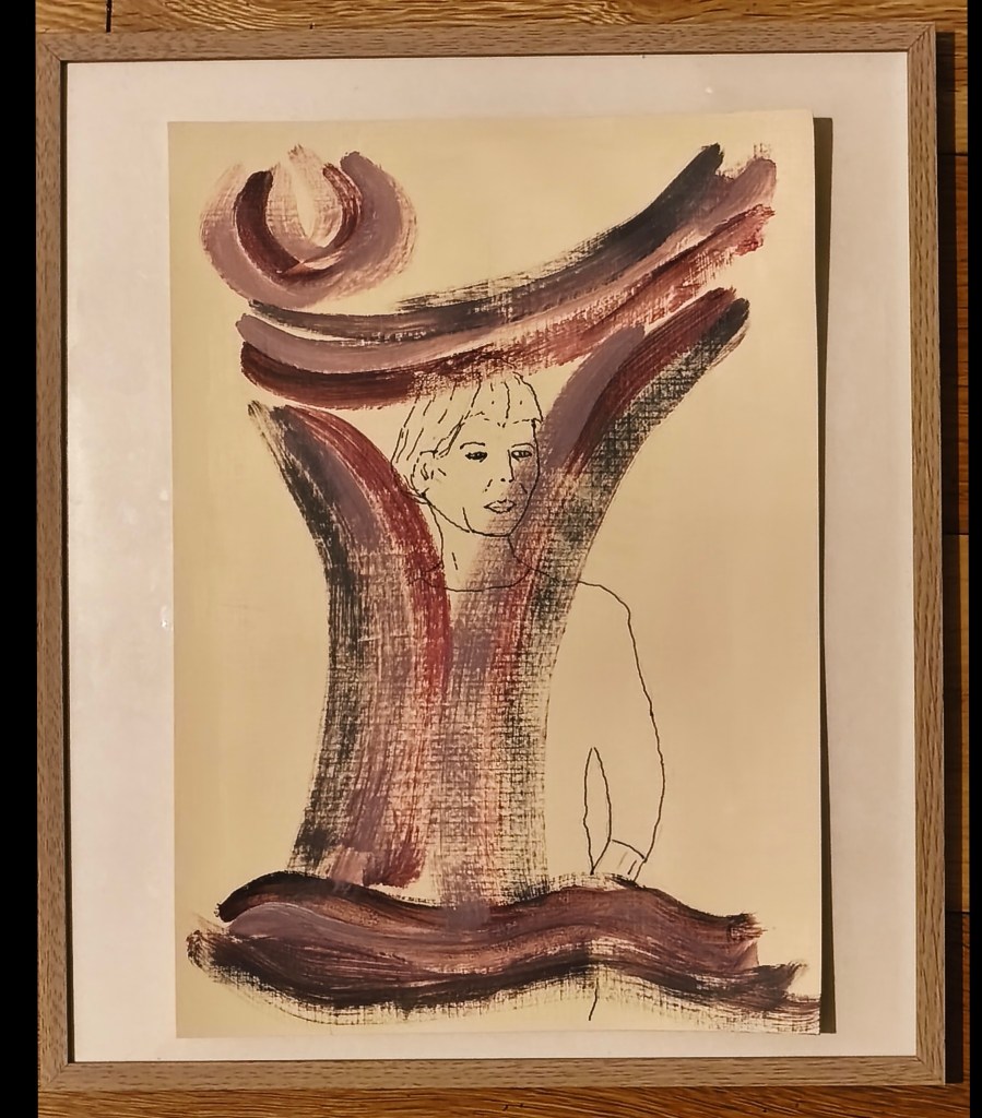 Self-portrait, abstract, acrylic on paper, A4 plus frame, £120, available at The Open Art Club Community Portrait Exhibition, Blackhorse Workshop Cafe, Feb 3rd to March 9th 2026. Open event February 11th 1-3pm.